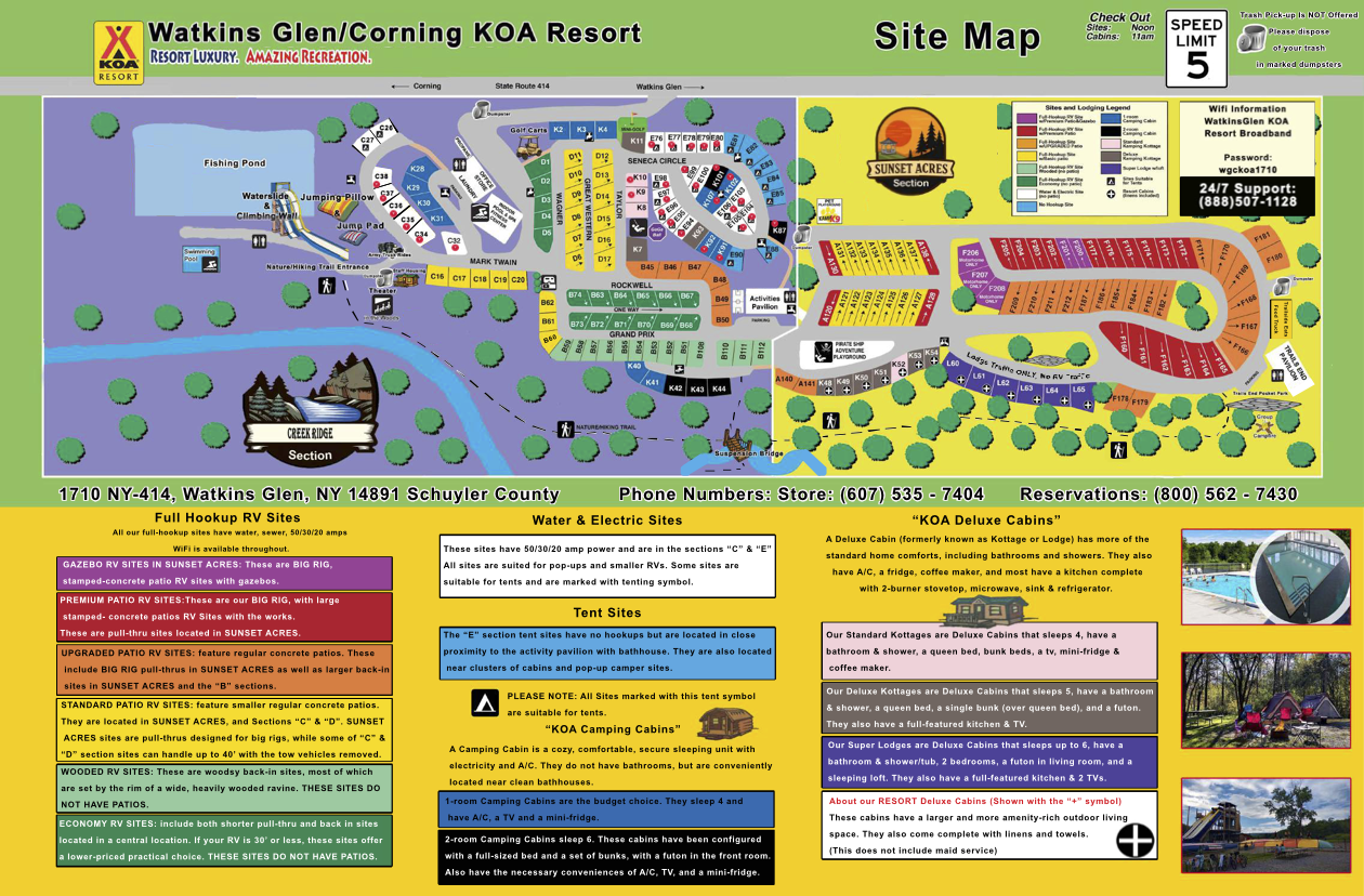 Join us for a weekend in nature at Watkins Glen KOA, 1710 State Route 414 (GPS address 1710 KOA Dr) Watkins Glen, NY 14891!